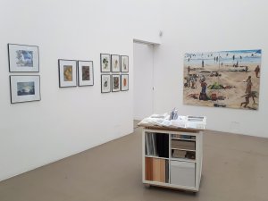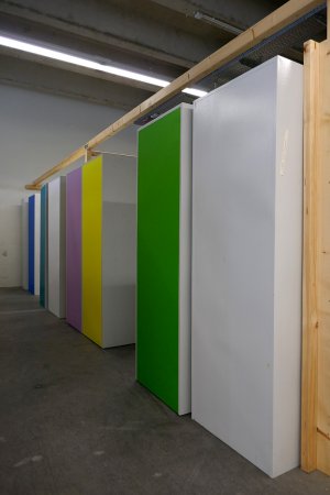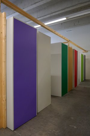 Beitrag zur BBK-Gruppenausstellung ":angekommen" 2017. Die Ausstellung fand in der Gemeinschaftsunterkunft Bergshausen statt, ein geplantes und fertig ausgestattetes Erstaufnahmelager, das allerdings nie in Betrieb genommen wurde. In Reaktion auf die Trostlosigkeit der Situation gab es von meiner Seite einen minimalistischen Eingriff in die vorhandene Möblierung, der den Betrachter auf seine eigenen Gedanken und Fragen zurückwerfen sollte.