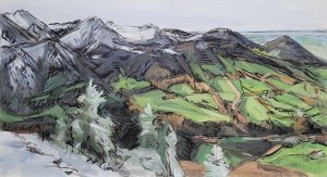 Am Sonntag, den 10. März 2024 fand in den Ateliers in der Wilhelmine-Halberstadt-Strasse 8-16 unser gemeinsamer "Tag der offenen Ateliers" statt, der mittlerweile auf eine über 20jährige Tradition zurückblicken kann und ausgesprochen gut besucht war. Zu diesem Anlass habe ich meine Ausstellung "Landschaft//Berge" mit Bildern und Studien eröffnet, die in den letzten Monaten entstanden sind. Heike Reich zeigte Bilder und Zeichnungen mit dem Schwerpunkt Pflanzen und Früchte.