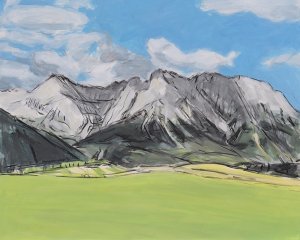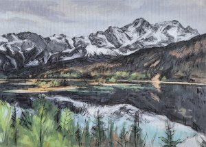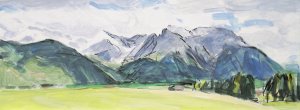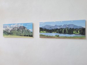 Anlass der Bildreihe waren mehrere Reisen ins Voralpenland in den vergangenen Jahren. Aus den dort entstandenen Fotos sind Motivreihen entstanden, die mich zu einer intensiveren Auseinandersetzung in dem Medium Malerei angeregt haben. Die Kontraste zwischen flachen bis hügeligen Landschaftsteilen, steil aufragenden Bergketten und zahlreichen Seen bieten viele Anregungen zu kontrastreichen und in ihrem Charakter gegensätzlichen Bildstrukturen, die durch unterschiedliche Witterungsverhältnisse (Wolkenschatten auf Berghängen!) noch verstärkt werden.