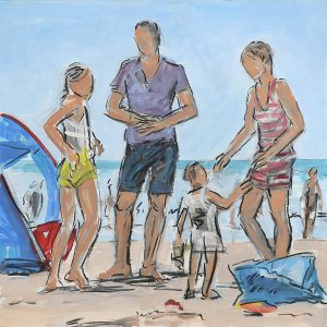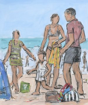 "Die Badenden" haben als Bildthema eine lange Tradition in der Kunstgeschichte. Auch in der klassischen Moderne ist es immer wieder als Herausforderung angenommen worden. Bei aller Begeisterung für Cézanne, Matisse und andere waren es aber letztlich die eigenen Erlebnisse, die die Auseinandersetzung mit dem Thema vorangetrieben haben, bis es später auch Niederschlag in der Projektarbeit gefunden hat (siehe Bilder für die AWO in Gütersloh, für Familie K.). Die ersten eigenen "Badenden" entstanden, nachdem ich jahrelang meine Fotos von Reisen an die See nur angeschaut hatte, woraus sich zunehmend das Bedürfnis entwickelt hatte, diese doch endlich in Bilder umzusetzen...