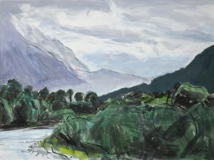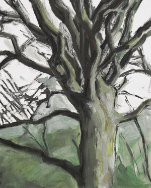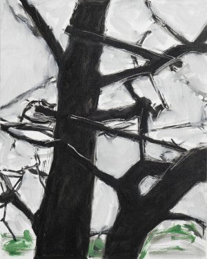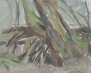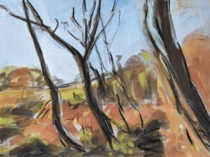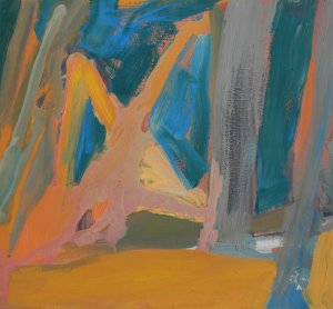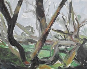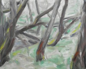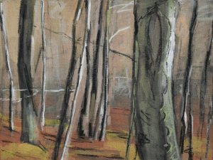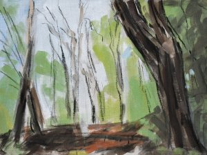 Experimentelles Malen kann sich mit Vorstellungen von landschaftlichen Formen anreichern, wie bei der Serie "Wald".