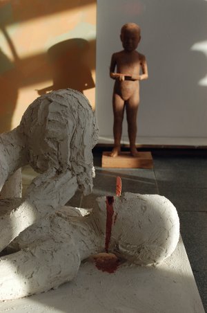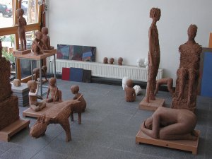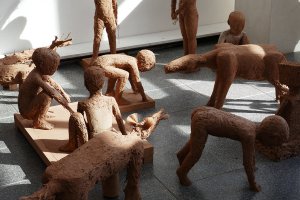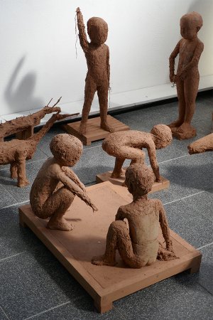 Die "Tiere" sind aus alten, umgebauten Stühlen und Holzresten entstanden, die Kinder haben biografischen Hintergrund: Sie variieren typische Situationen, die zu Hause beobachtet wurden.