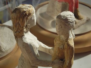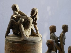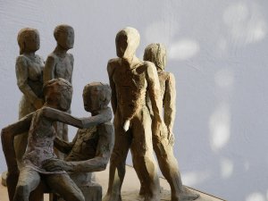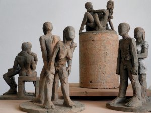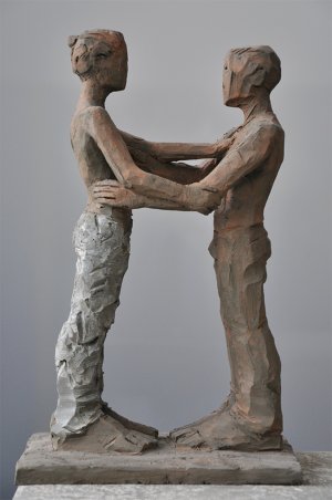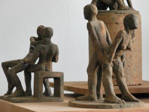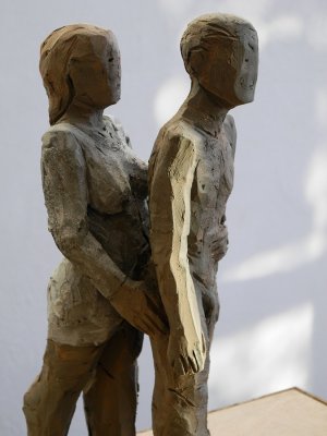 Eine weitere Reihe von 6 Paaren, die ebenfalls als (variable) Einheit konzipiert ist, siehe auch: Ausstellungen im Atelier, "Identitäten-Beziehungen". Die plastische Interaktion der Figuren erreicht ein hohes Maß an Dichte und Komplexität, dementsprechend wirken sie auch emotional aufgeladen.