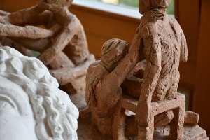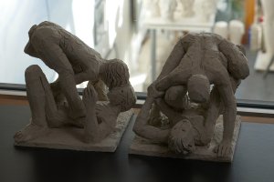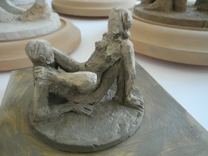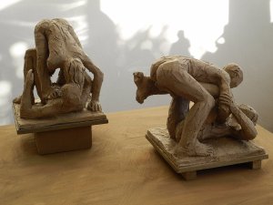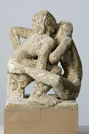 Aus dem Projekt "Feld" hat sich quasi als Verdichtung die Beschäftigung mit Paarbeziehungen entwickelt. Bei der Arbeit an den Modellen bin ich von formalen Überlegungen ausgegangen: wie sich Volumen zueinander verhalten, welche Räume entstehen, welche Vektoren die Gliedmaßen zueinander bilden usw. Zwangsläufig wird die wahrgenommene körperliche Nähe auch emotional bewertet, manche Situationen sind auch so provokativ gemeint, wie sie erscheinen.